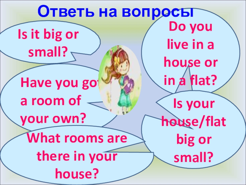 Do you live in a house or in a flat?Ответь на вопросы ЭннIs your house/flatbig or small?Have