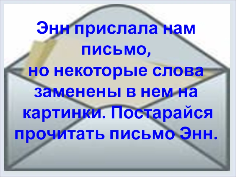Энн прислала нам письмо, но некоторые слова заменены в нем на картинки. Постарайся прочитать письмо Энн.