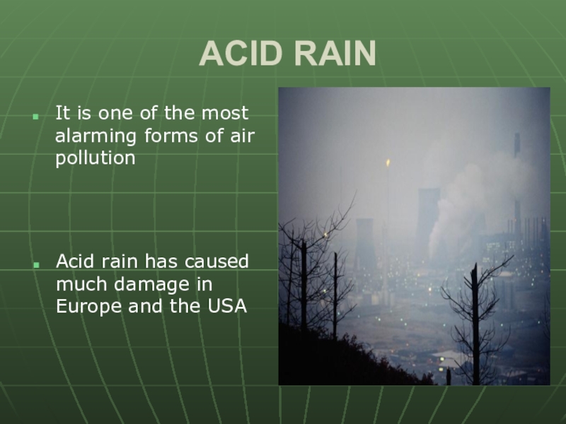 Acid rain has caused much damage in Europe and the USA