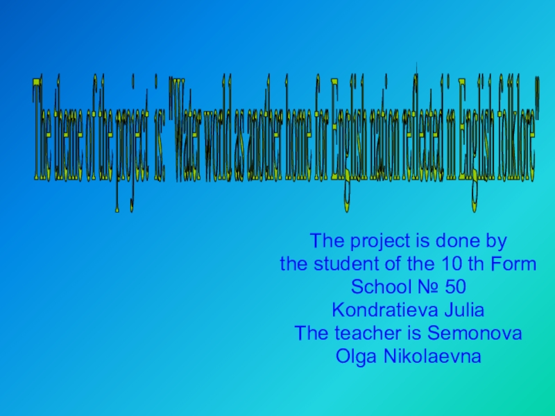 The theme of the project is: "Water world as another home for English nation reflected in English folklore"