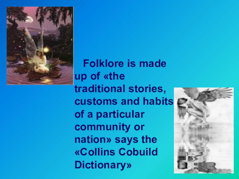 Слайд 6 Folklore is made up of «the traditional stories,