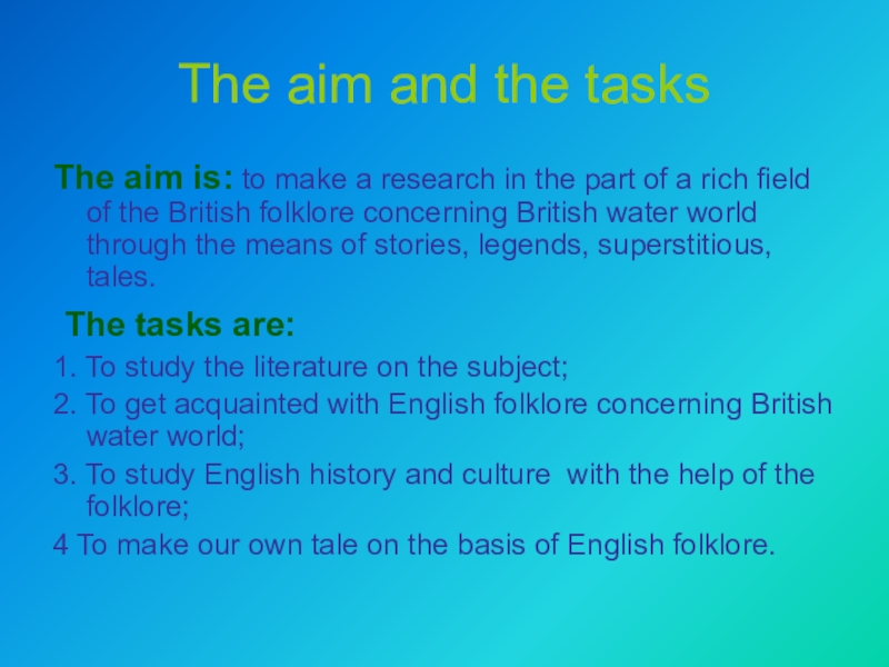 2. To get acquainted with English folklore concerning British water world;