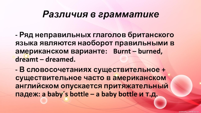 в американском варианте: Burnt – burned, dreamt – dreamed.