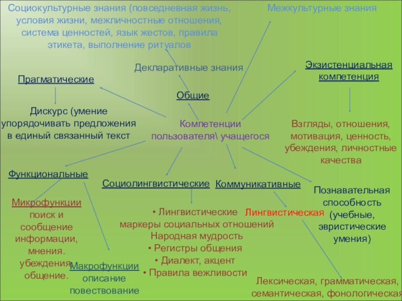 Социокультурные знания (повседневная жизнь, условия жизни, межличностные отношения, система ценностей, язык жестов, правила этикета, выполнение ритуалов