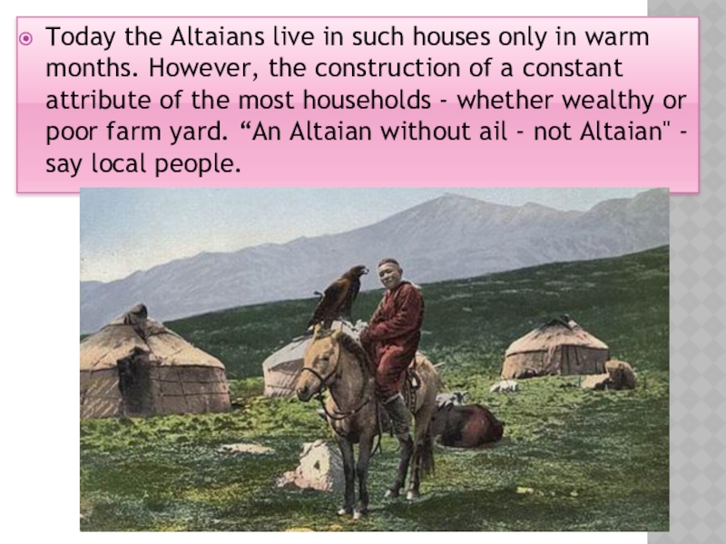 Слайд 10Today the Altaians live in such houses only in warm months.
