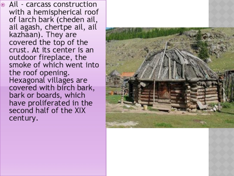 Слайд 13 Altaian tribes called a yurt - ail. Usually it is