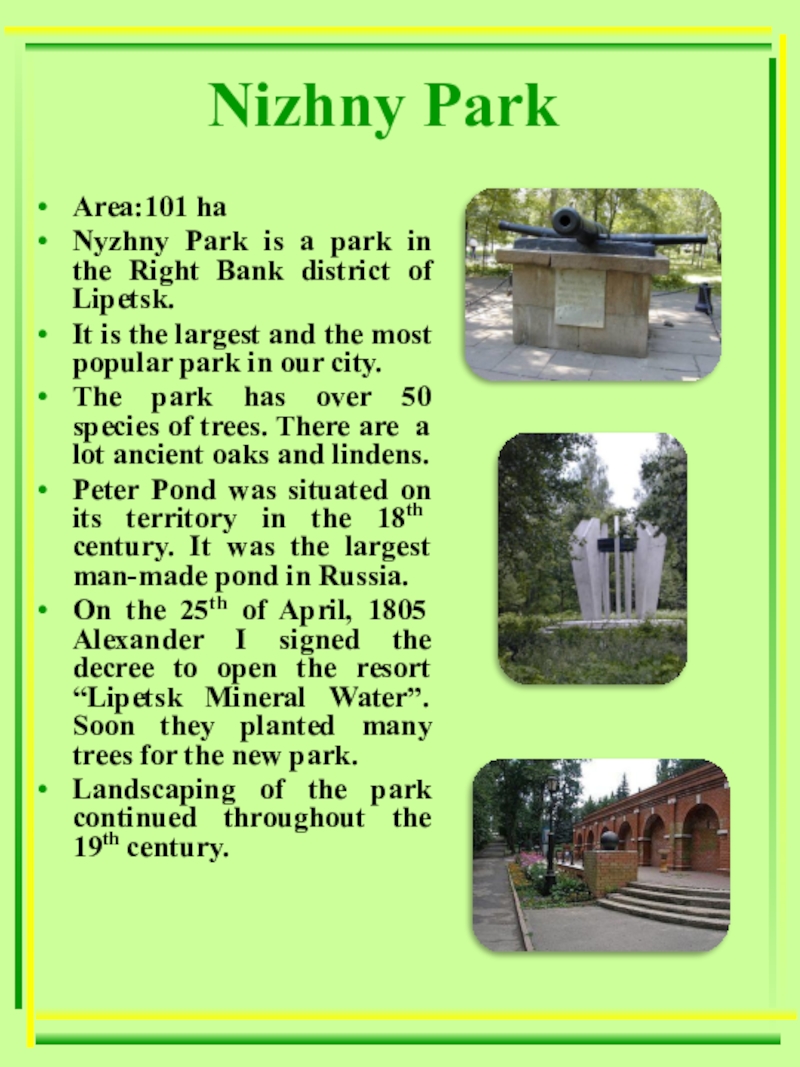 In 1803 thanks to local mineral springs with mineral water here appeared a resort which is considered to be one of the oldest in today's Russia.