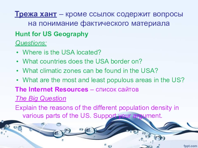 Это сайт презентаций, где можно хранить и обмениваться своими презентациями, докладами, проектами, шаблонами в формате PowerPoint с другими пользователями. Мы помогаем школьникам, студентам, учителям, преподавателям хранить и обмениваться учебными материалами.