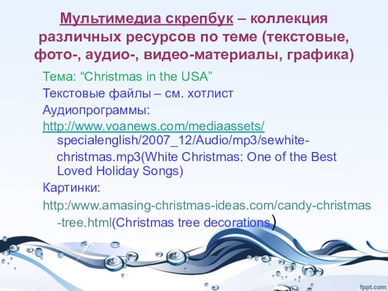 Тема: “Christmas in the USA”