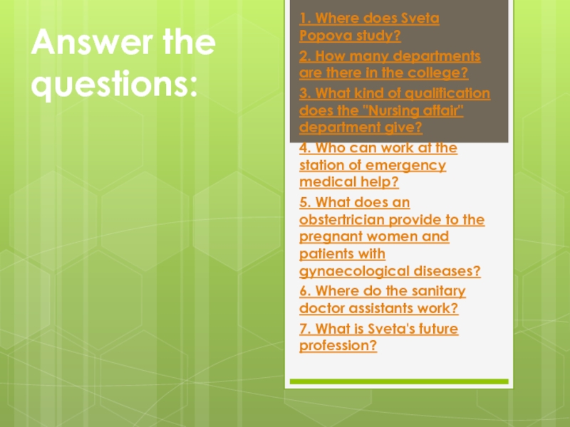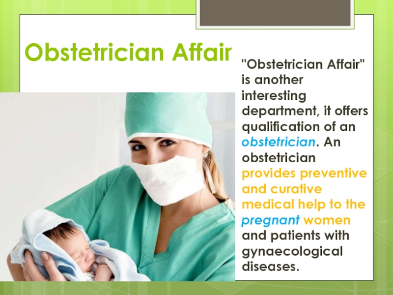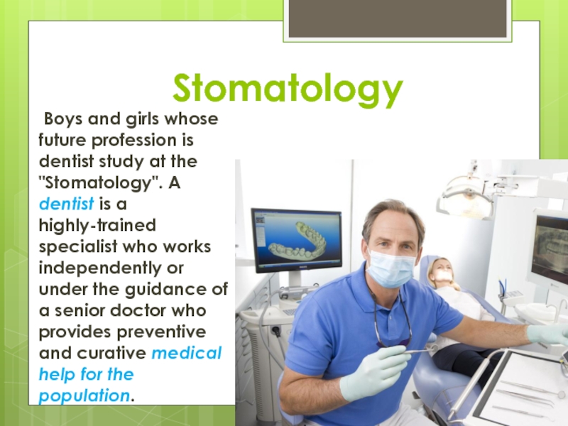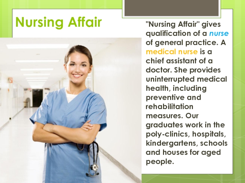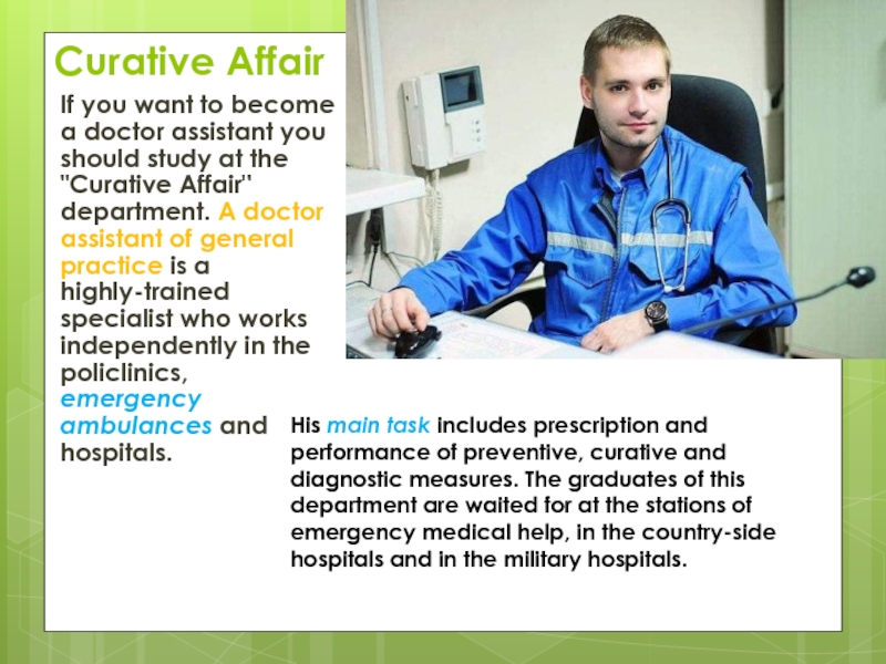 His main task includes prescription and performance of preventive, curative and diagnostic measures. The graduates of this department are waited for at the stations of emergency medical help, in the country-side hospitals and in the military hospitals.