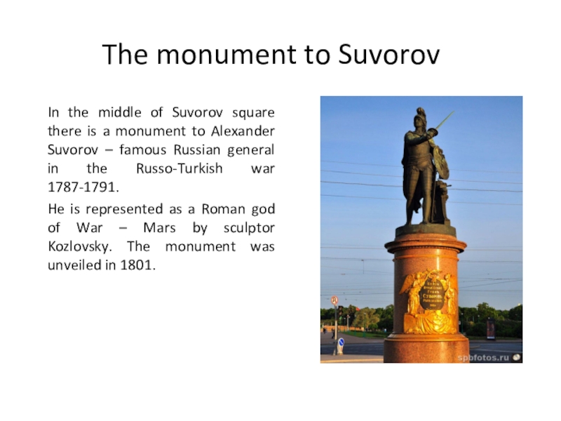 The monument to SuvorovIn the middle of Suvorov square there is a monument to Alexander Suvorov –