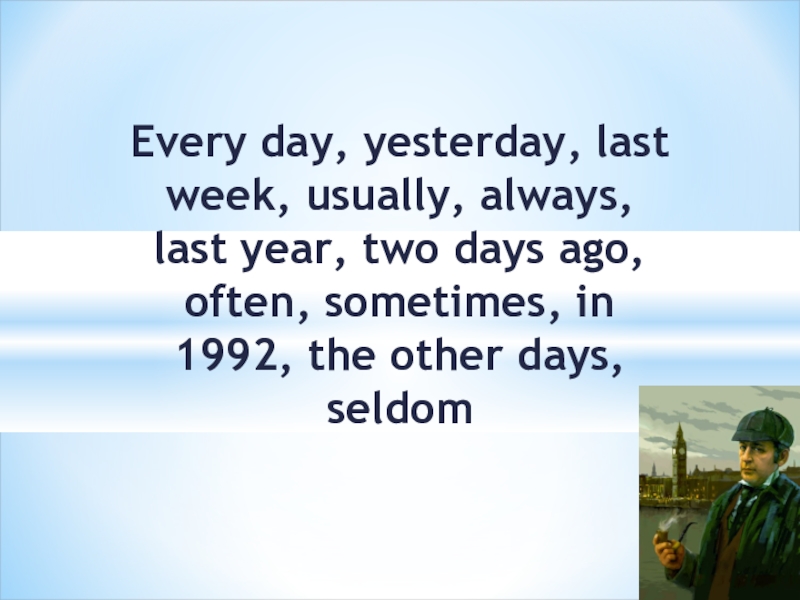 Слайд 1Every day, yesterday, last week, usually, always, last year, two days