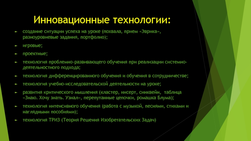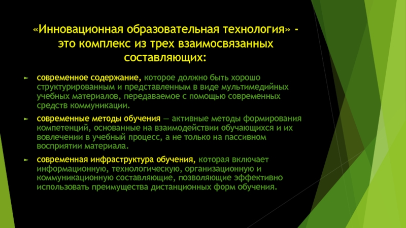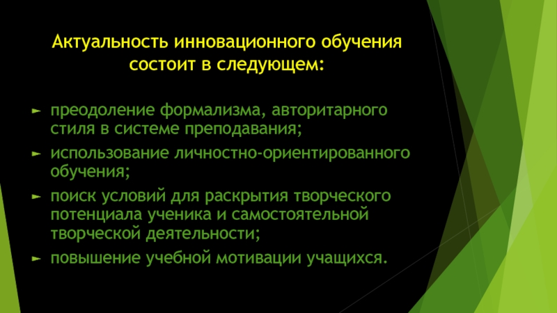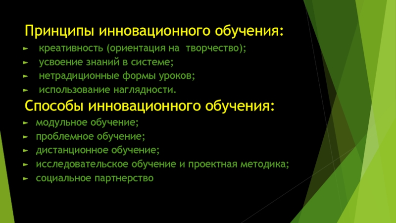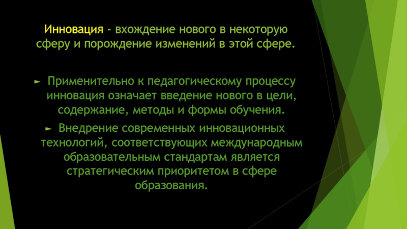 Применительно к педагогическому процессу инновация означает введение нового в цели, содержание, методы и формы обучения.