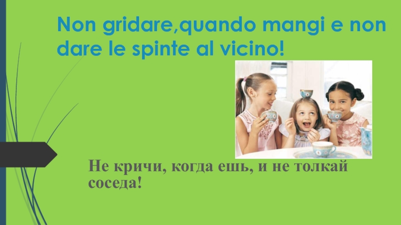 Слайд 4Non gridare,quando mangi e non dare le spinte al vicino!