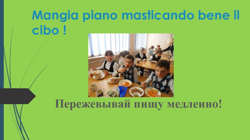 Слайд 5 Mangia piano masticando bene il cibo !