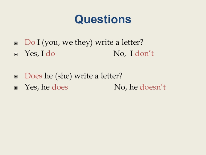 QuestionsDo I (you, we they) write a letter? Yes, I do