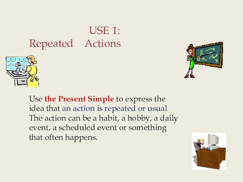 USE 1: Repeated  Actions    Use the Present Simple to express the idea that an action is
