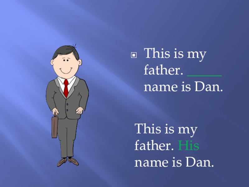 Слайд 4This is my father. _____ name is Dan.
