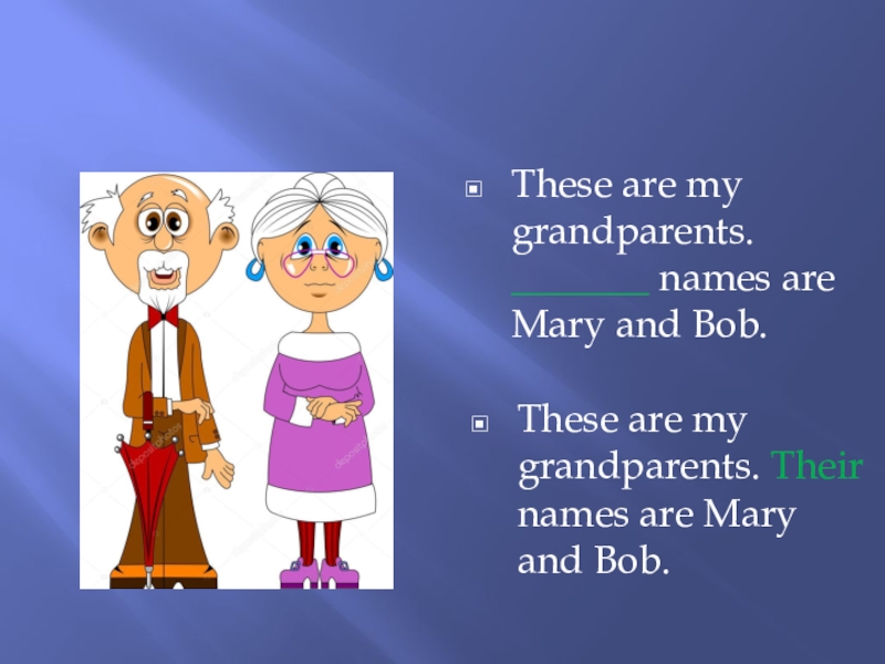 Слайд 7These are my grandparents. _______ names are Mary and Bob.