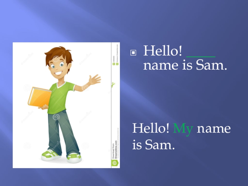 Слайд 2Hello! ____ name is Sam.
