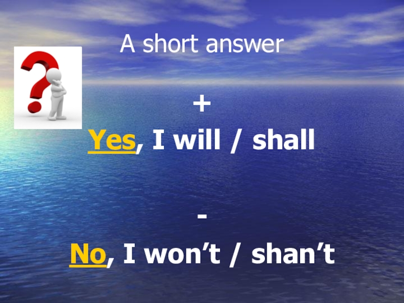 A short answer+Yes, I will / shall-No, I won’t / shan’t