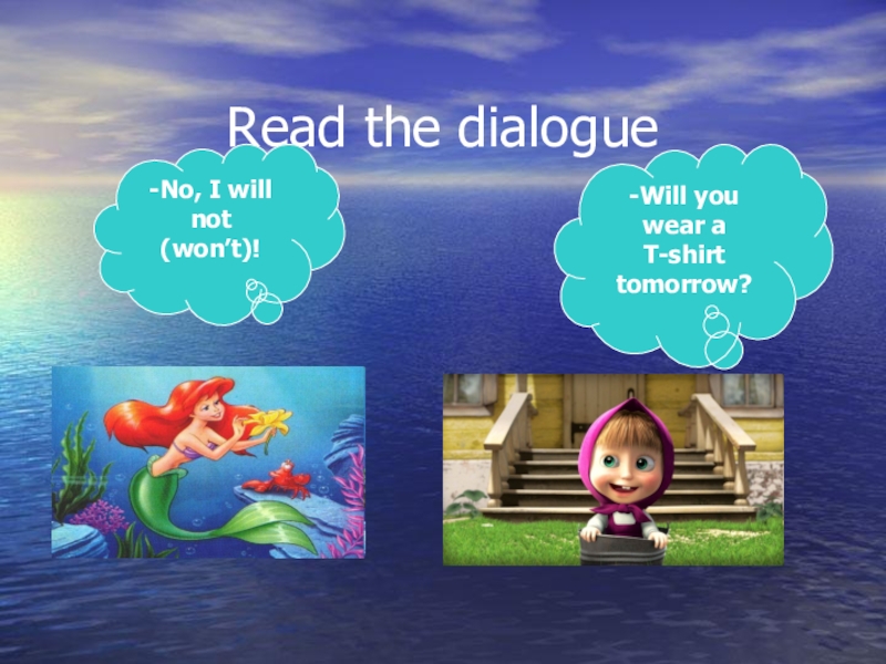 Read the dialogue-No, I will not (won’t)!-Will you wear a T-shirt tomorrow?