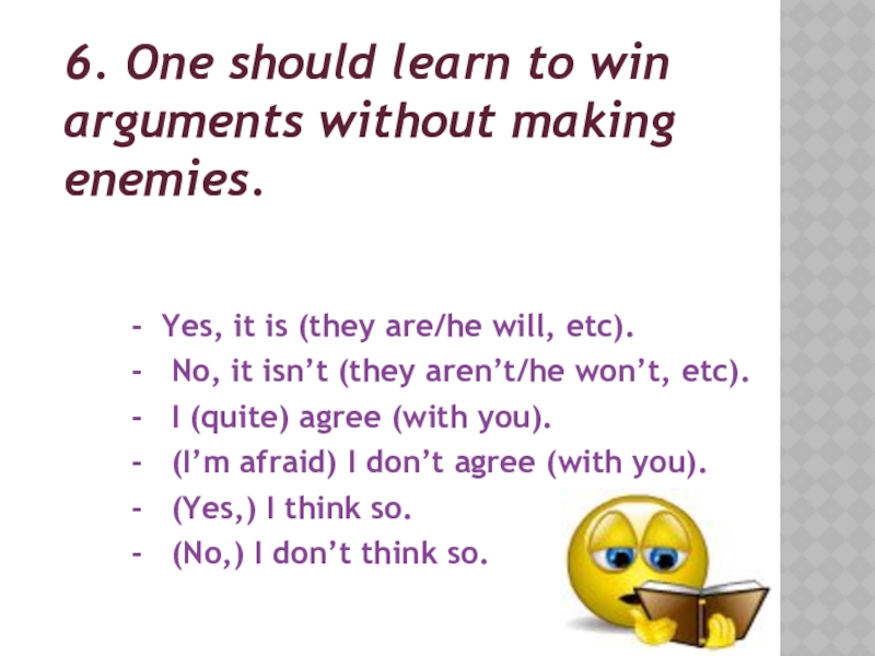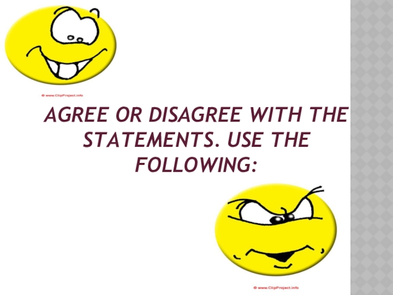 Слайд 10AGREE OR DISAGREE WITH THE STATEMENTS. USE THE FOLLOWING: