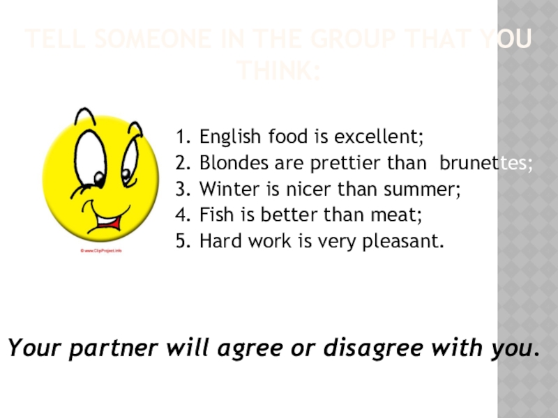 Слайд 21TELL SOMEONE IN THE GROUP THAT YOU THINK: