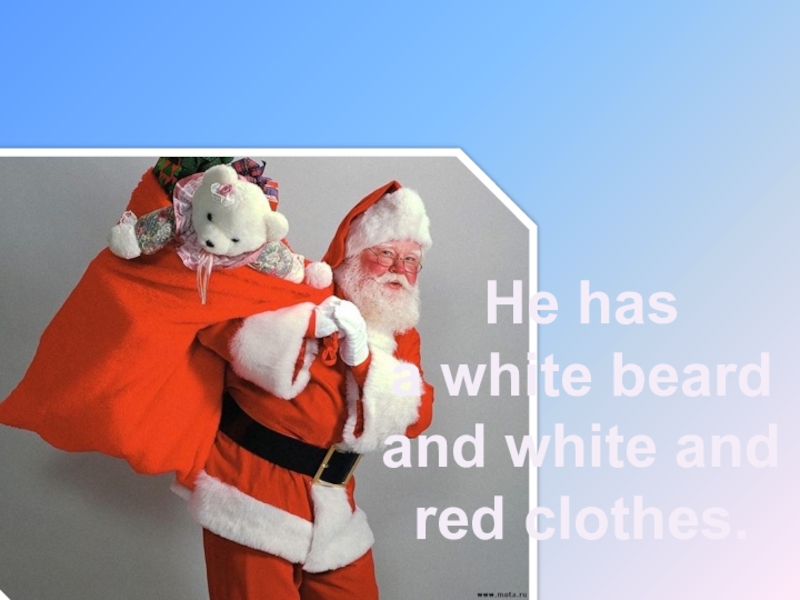 Father Christmas (Santa Claus)He has a white beard and white and red clothes.