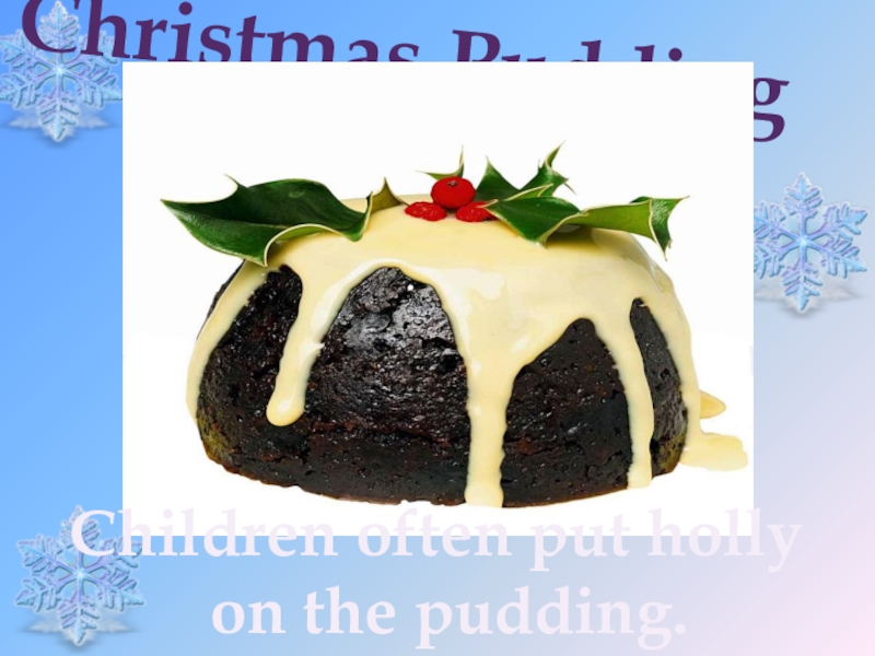 Christmas PuddingChildren often put holly on the pudding.