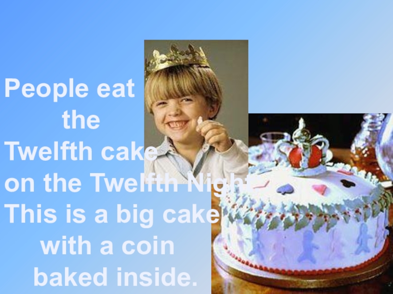 Twelfth NightPeople eat    the Twelfth cake on the Twelfth Night. This is a big