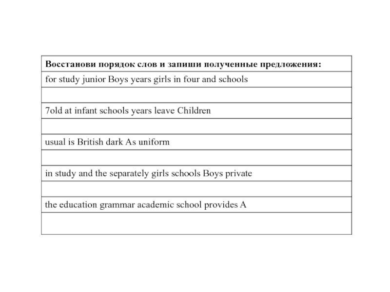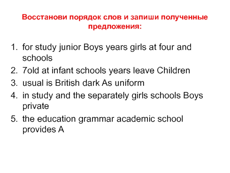 Слайд 9Восстанови порядок слов и запиши полученные предложения: