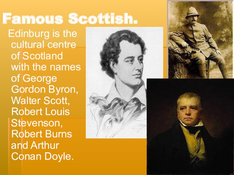 Famous Scottish. Edinburg is the cultural centre of Scotland with the names of George Gordon Byron, Walter