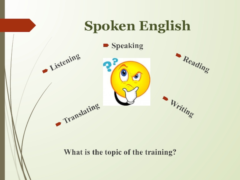Spoken EnglishThe aim -to help participants in teaching spoken English The tasks: -  to expand trainees’