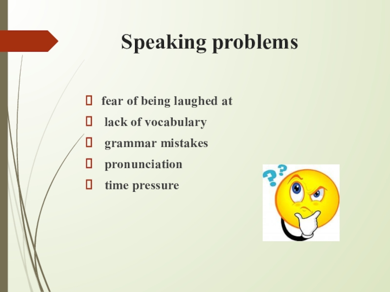 Speaking problemsfear of being laughed at lack of vocabulary grammar mistakes pronunciation time pressure