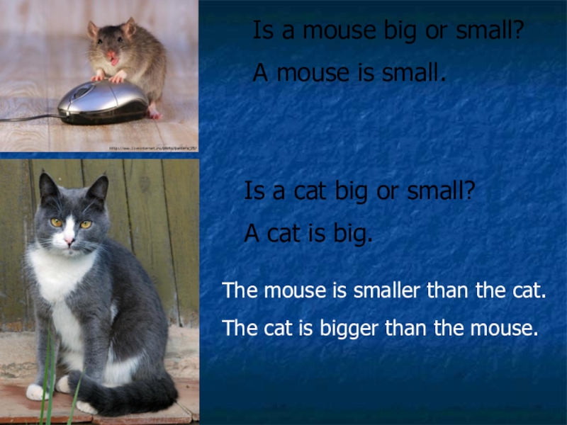 The cat is bigger than the mouse.