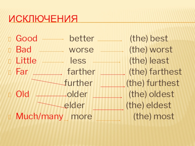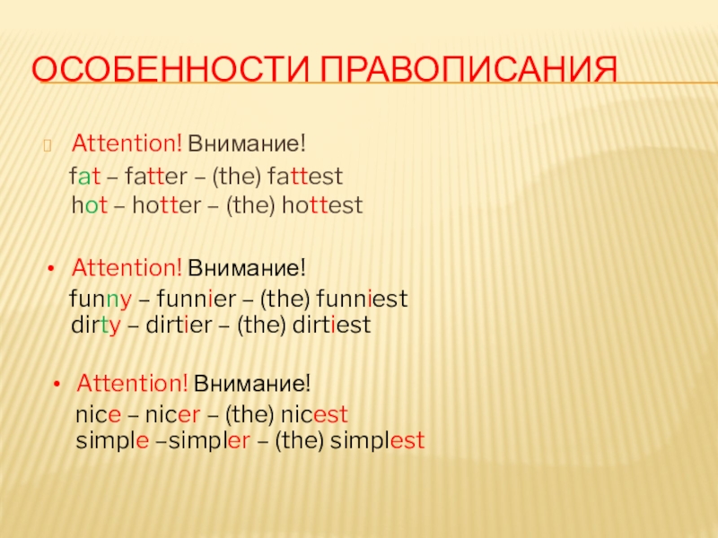 nice – nicer – (the) nicest simple –simpler – (the) simplest