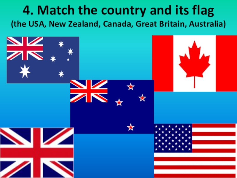 4. Match the country and its flag (the USA, New Zealand, Canada, Great Britain, Australia)