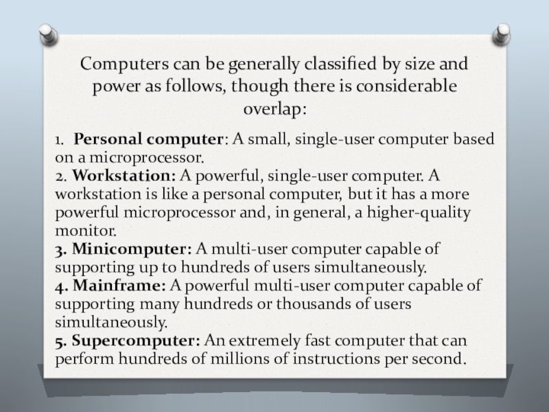 3. Minicomputer: A multi-user computer capable of supporting up to hundreds of users simultaneously.