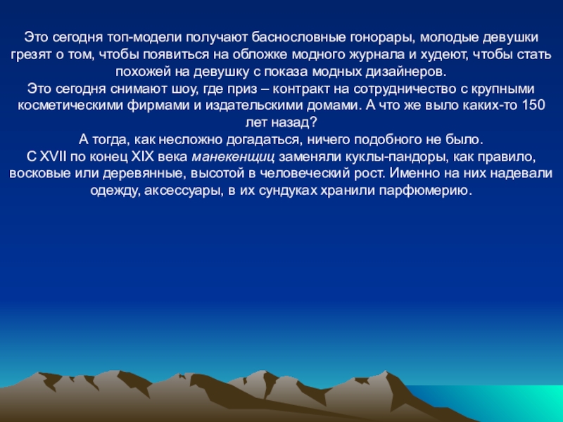 Слайд 6Это сегодня топ-модели получают баснословные гонорары, молодые девушки грезят о том,