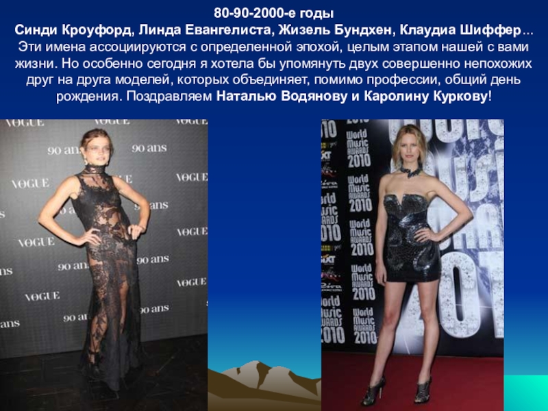 ассоциируются с определенной эпохой, целым этапом нашей с вами жизни. Но особенно сегодня я хотела бы упомянуть двух совершенно непохожих друг на друга моделей, которых объединяет, помимо профессии, общий день рождения. Поздравляем Наталью Водянову и Каролину Куркову!