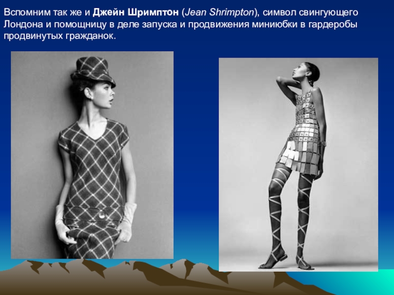 Слайд 15Вспомним так же и Джейн Шримптон (Jean Shrimpton), символ свингующего Лондона