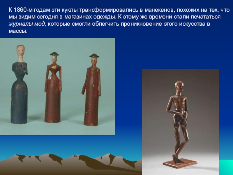 Слайд 8К 1860-м годам эти куклы трансформировались в манекенов, похожих на тех,