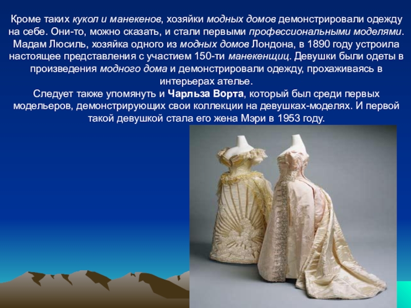 Первые манекенщицы появились во второй половине XIXПервые манекенщицы появились во второй