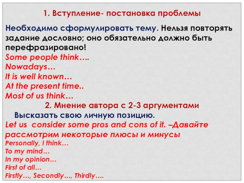 1.Nowadays, almost every family has a car. A lot of people say that travelling by car is very convenient, while others sure that cars cause many problems.