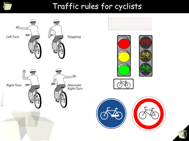 Слайд 9 Traffic rules for cyclists