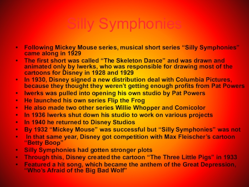 Following Mickey Mouse series, musical short series “Silly Symphonies” came