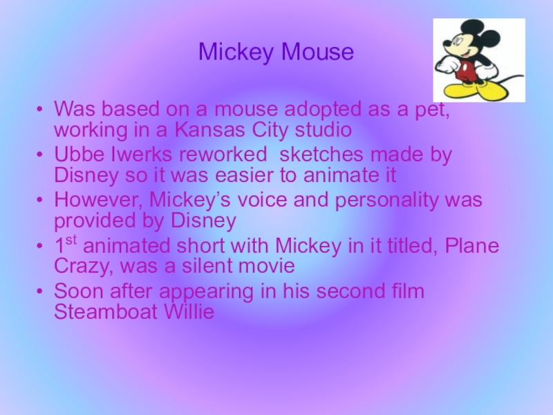 1st animated short with Mickey in it titled, Plane Crazy, was a silent movie