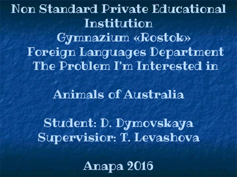Department The Problem I’m Interested in Animals of Australia Student: D. Dymovskaya Supervisior: T. Levashova Anapa 2016
