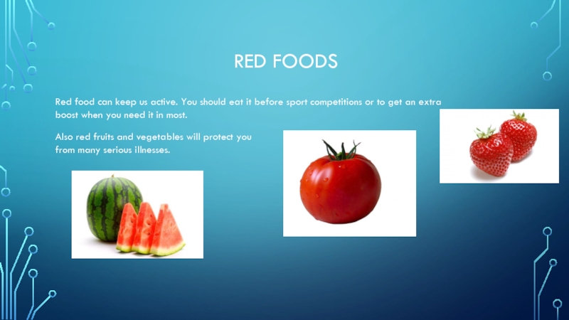 Also red fruits and vegetables will protect you from many serious illnesses.